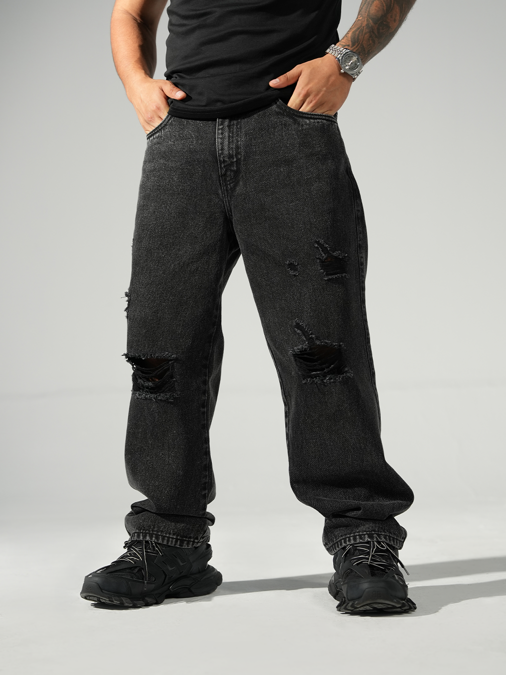 La moda urbana se define por su capacidad de romper reglas, y ninguna prenda encarna mejor este espíritu que el Jean Negro Baggy DSTR Rasgado. En 3×100.pe, entendemos que tu ropa es una extensión de tu personalidad. Por ello, traemos esta pieza en promoción, diseñada para quienes no se conforman con lo básico y buscan añadir una dosis de carácter y rebeldía a su rotación diaria. Este no es solo un pantalón; es la definición de actitud en formato denim.